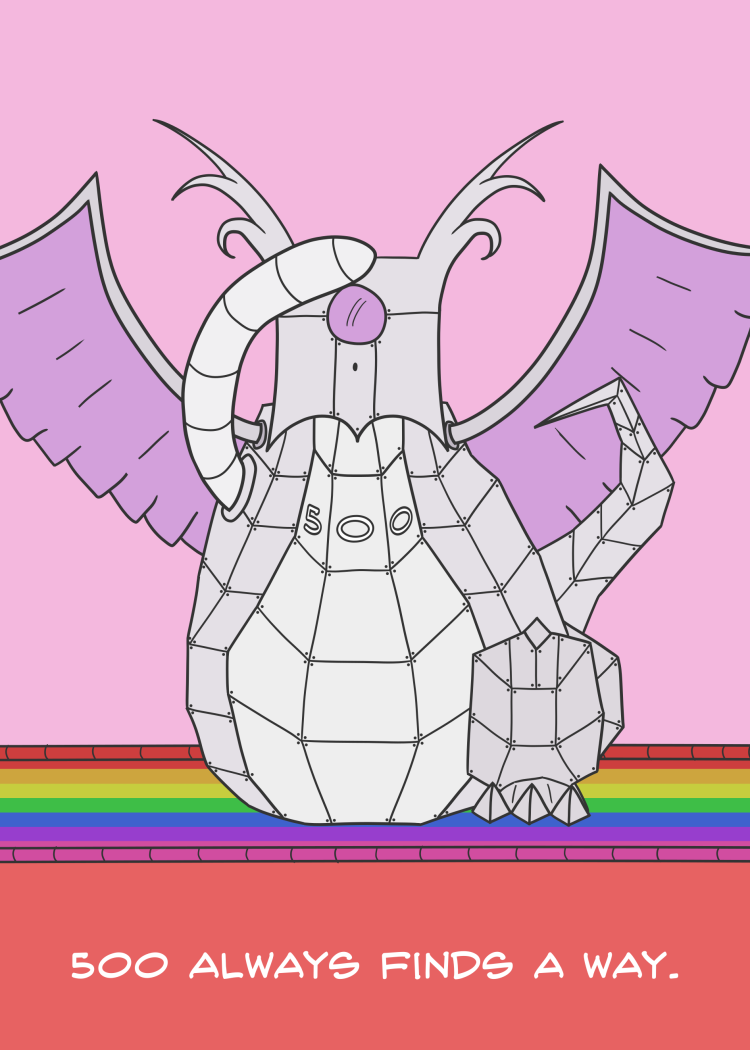 Poster of my first book, My name is 404, featuring 500, a robot that occasionally turns into a dragon. Most of the time nobody really knows why.