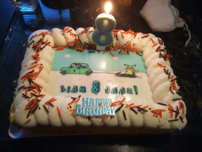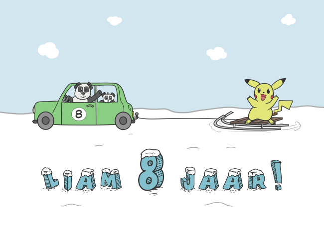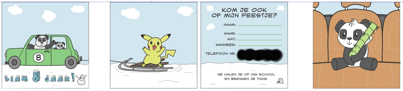Panda & pikachu themed birthday cake, invitation folder & poster.